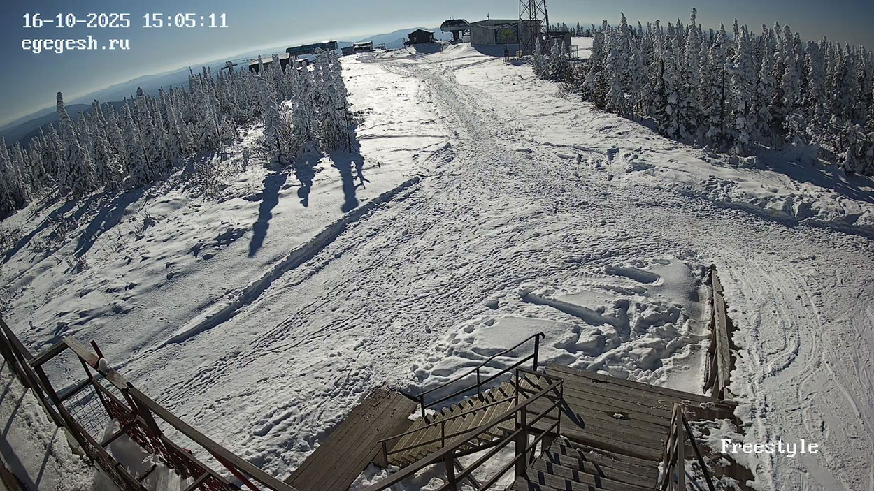 Веб-камера установлена на здании кафе Freedom. Добраться можно на подъемнике «Фристайл».