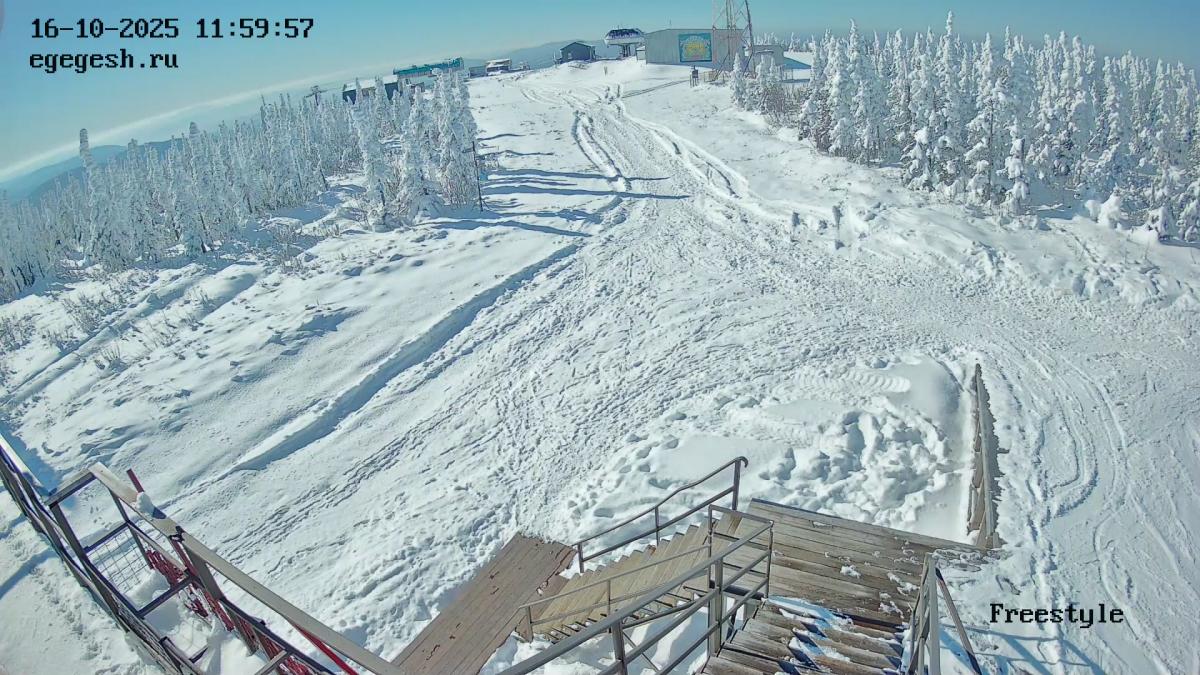 Веб-камера установлена на здании кафе Freedom. Добраться можно на подъемнике «Фристайл».
