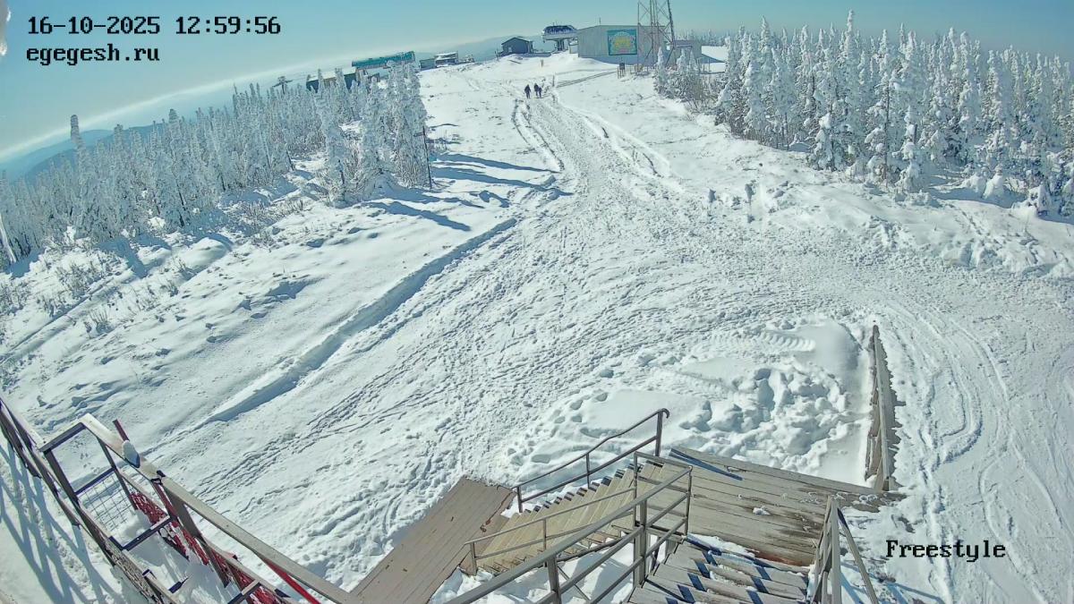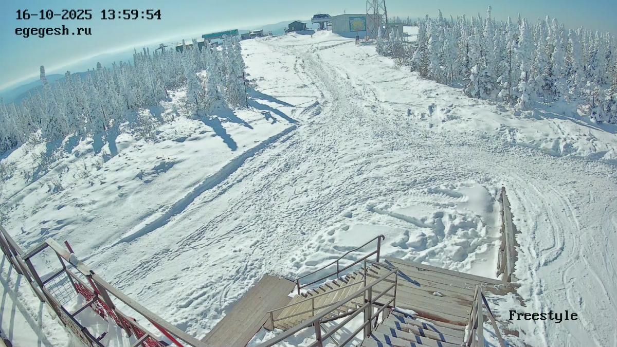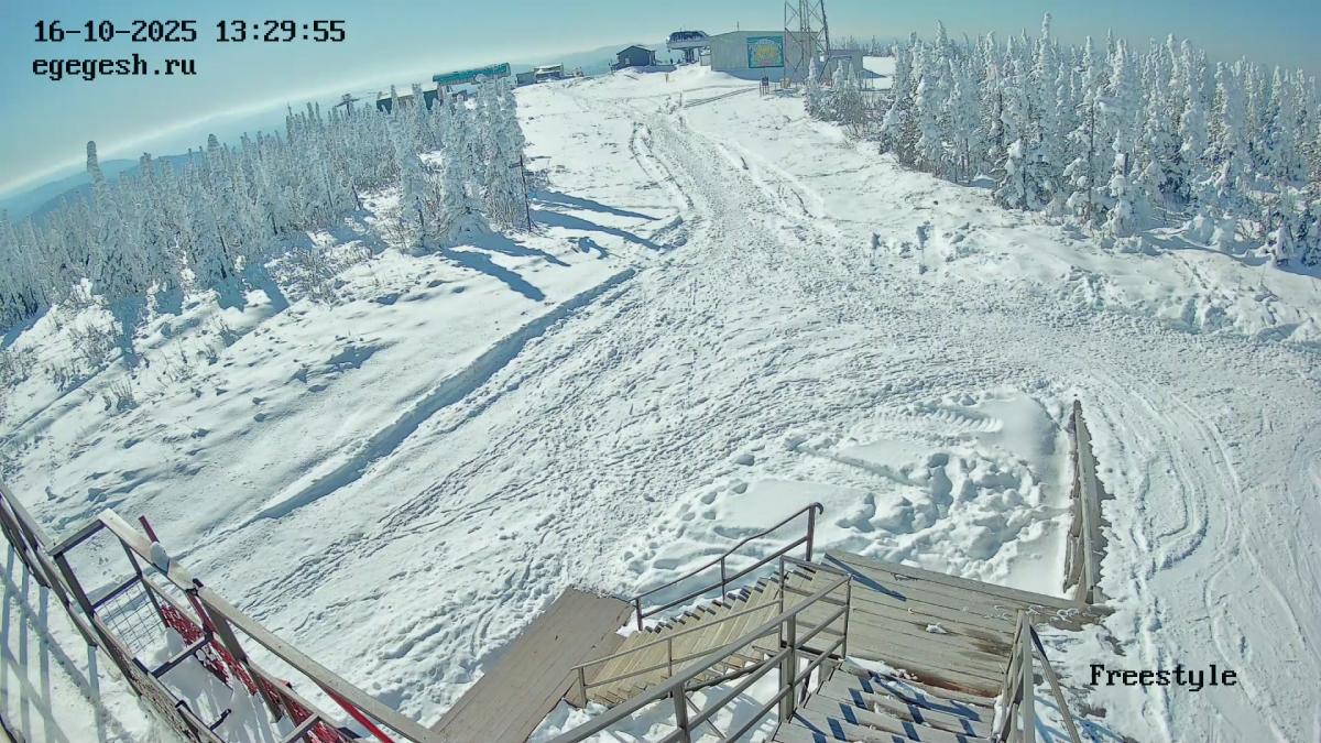 Веб-камера установлена на здании кафе Freedom. Добраться можно на подъемнике «Фристайл».