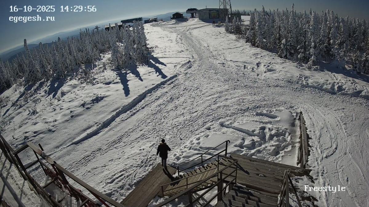 Веб-камера установлена на здании кафе Freedom. Добраться можно на подъемнике «Фристайл».