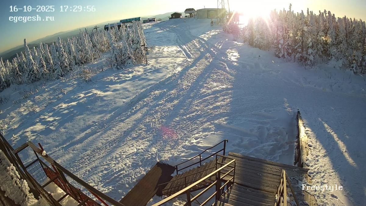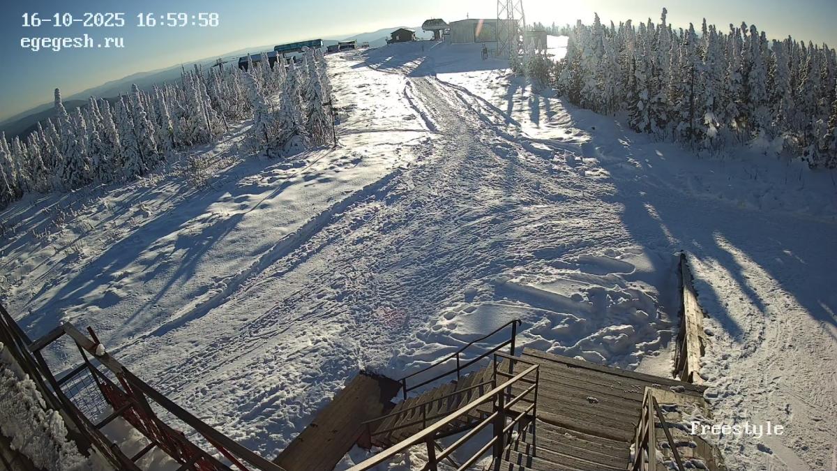 Веб-камера установлена на здании кафе Freedom. Добраться можно на подъемнике «Фристайл».