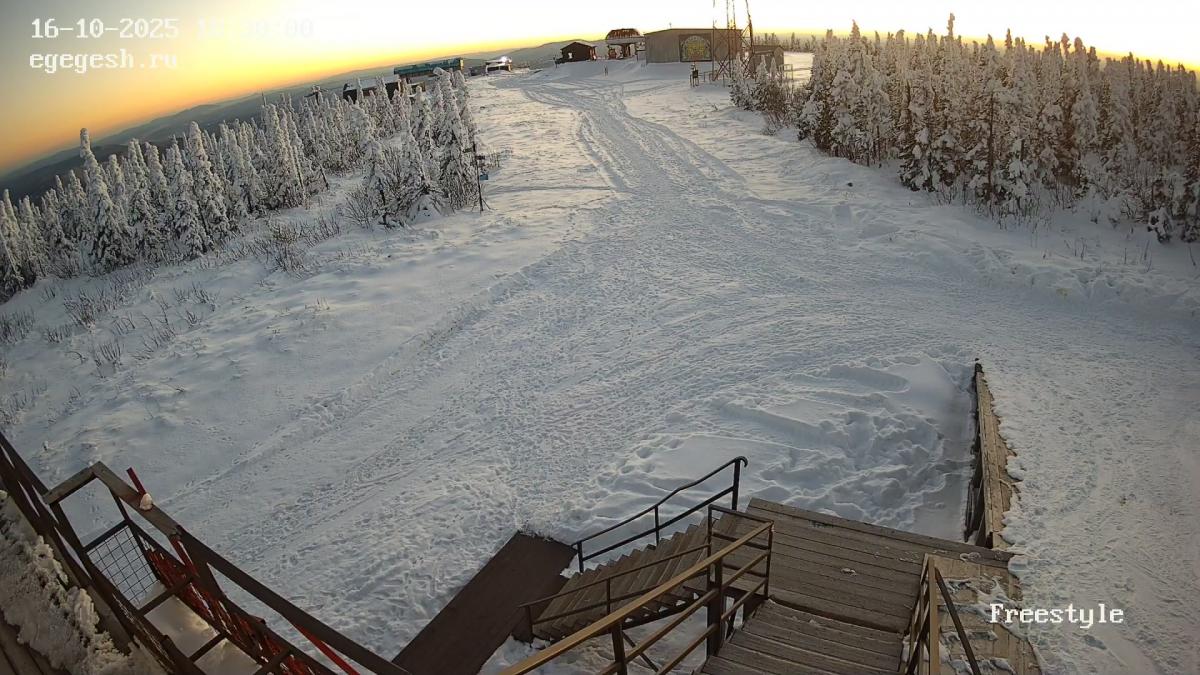 Веб-камера установлена на здании кафе Freedom. Добраться можно на подъемнике «Фристайл».