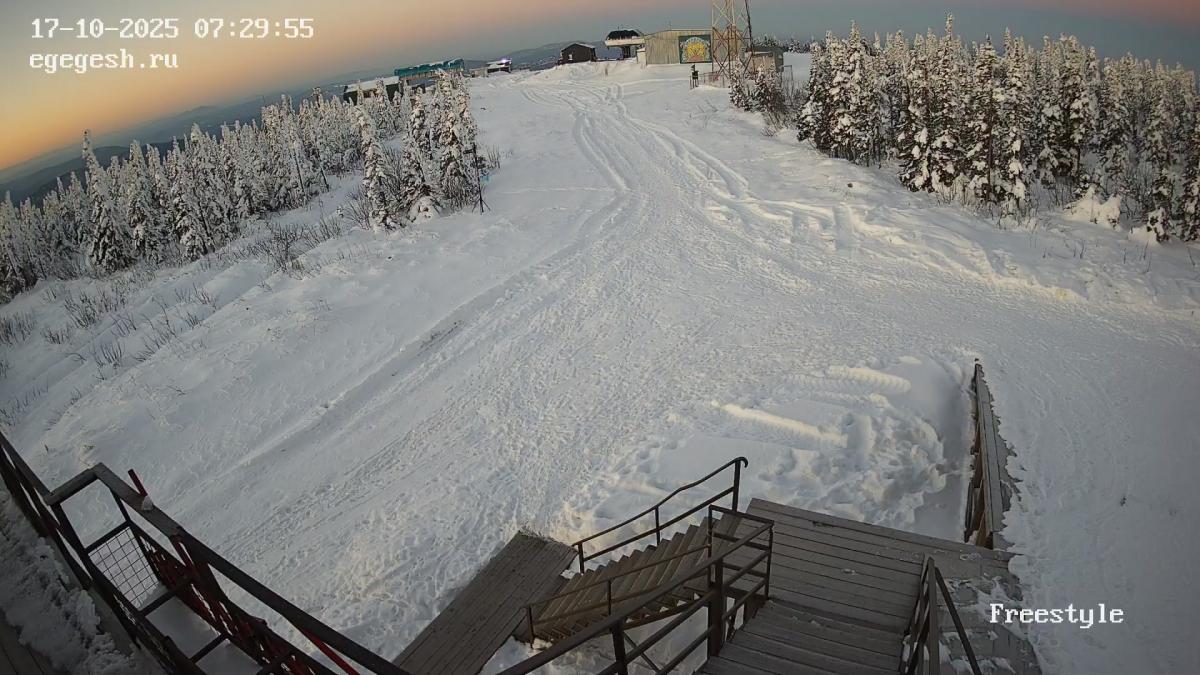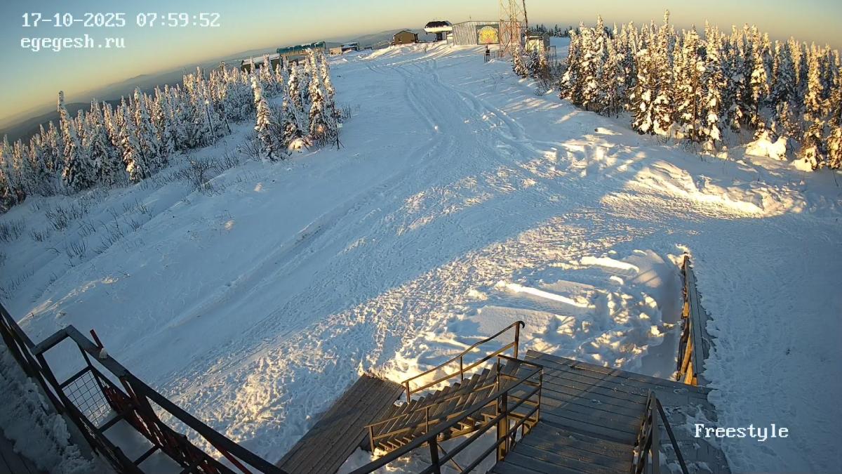 Веб-камера установлена на здании кафе Freedom. Добраться можно на подъемнике «Фристайл».