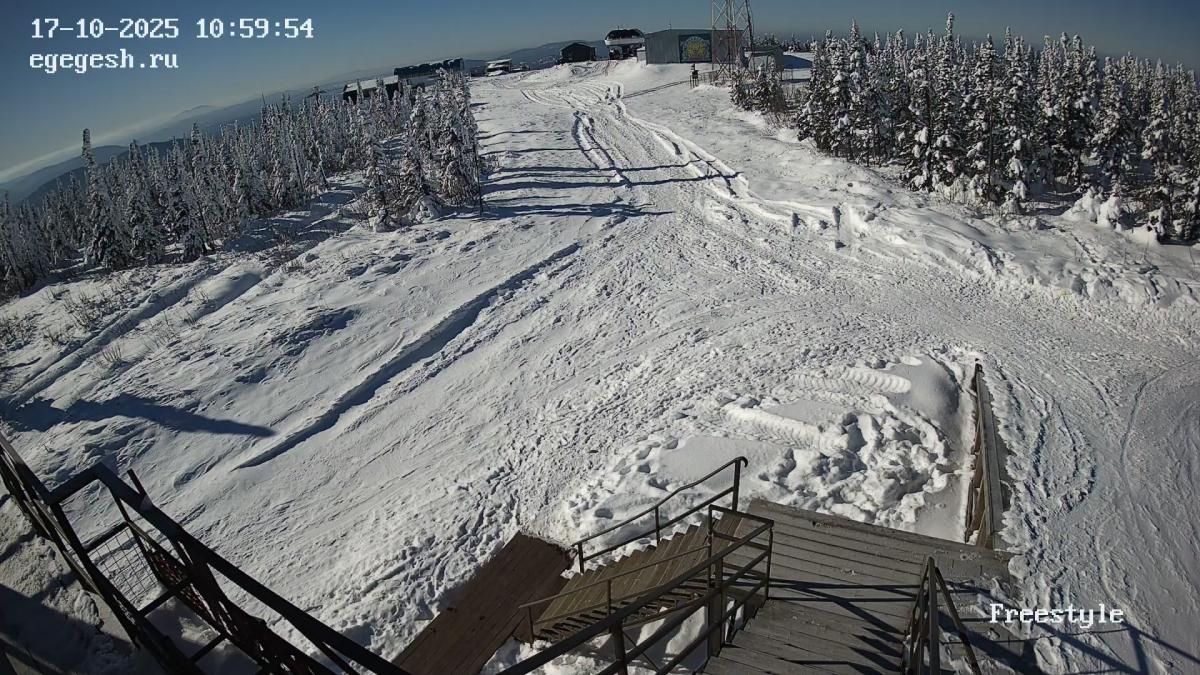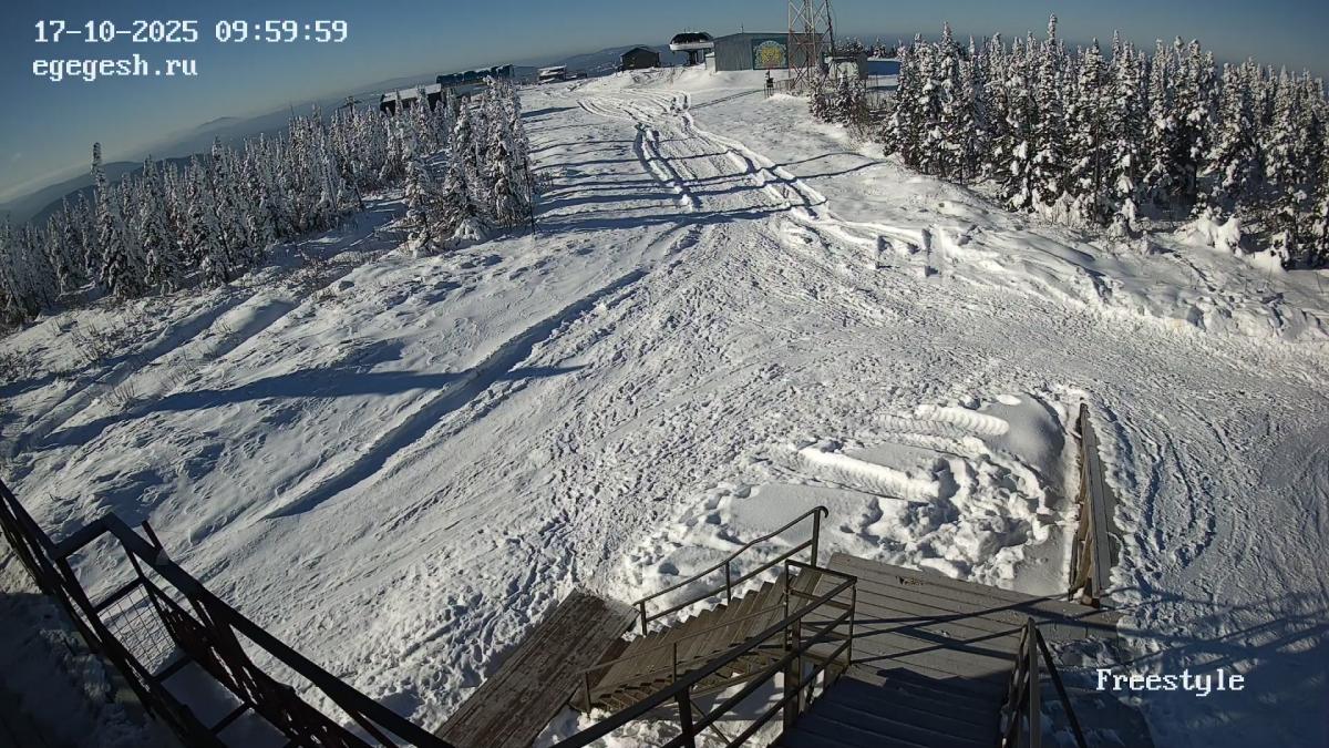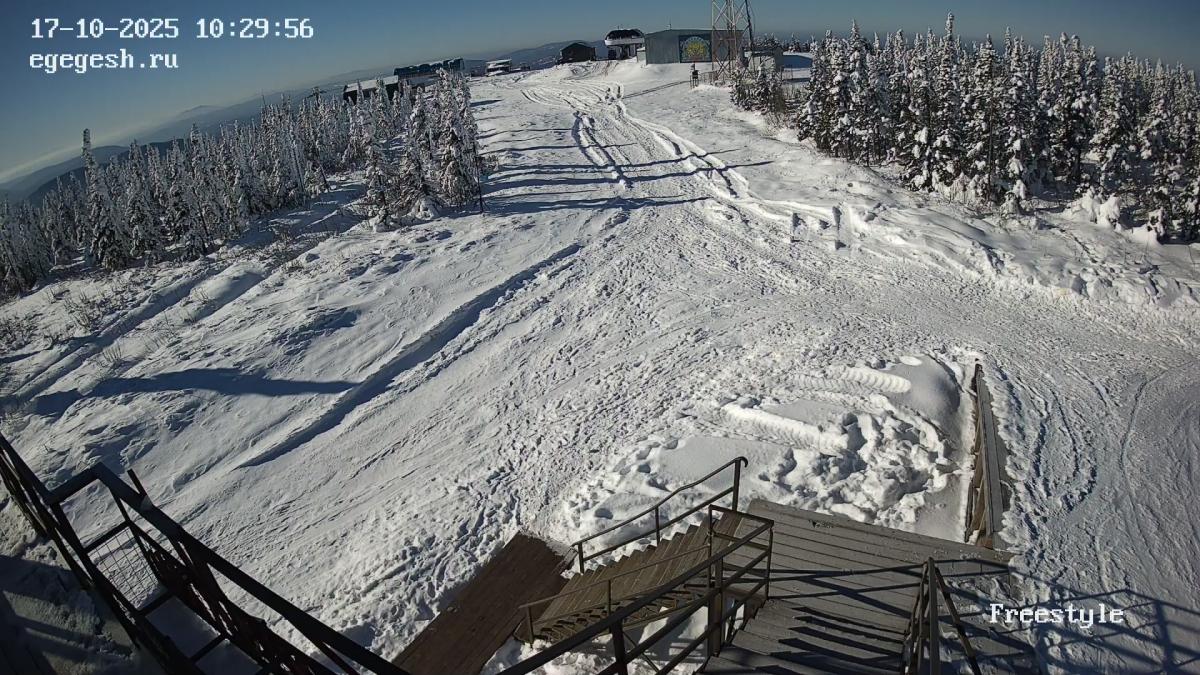 Веб-камера установлена на здании кафе Freedom. Добраться можно на подъемнике «Фристайл».