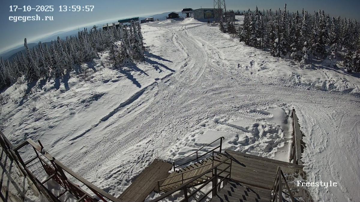 Веб-камера установлена на здании кафе Freedom. Добраться можно на подъемнике «Фристайл».
