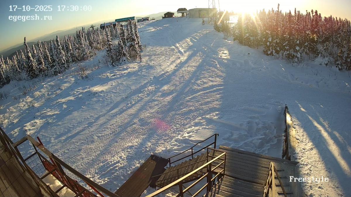 Веб-камера установлена на здании кафе Freedom. Добраться можно на подъемнике «Фристайл».