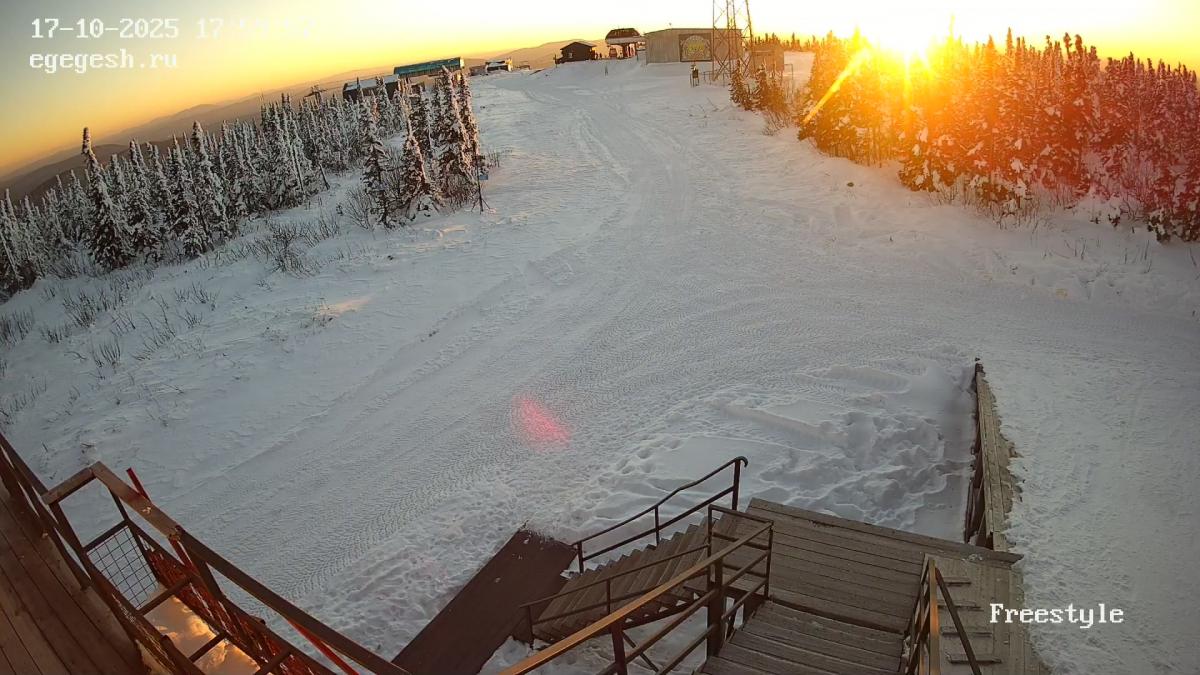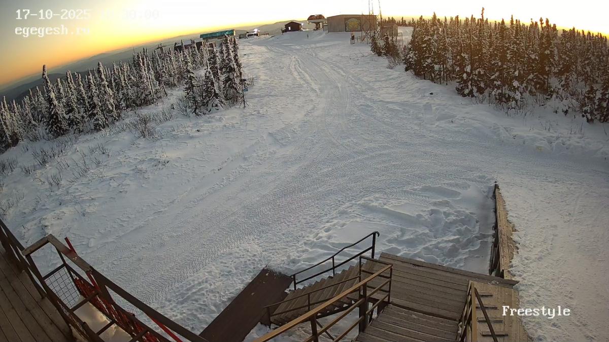 Веб-камера установлена на здании кафе Freedom. Добраться можно на подъемнике «Фристайл».