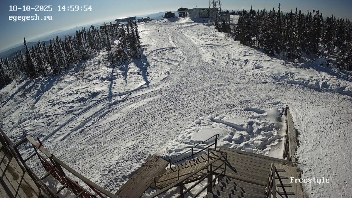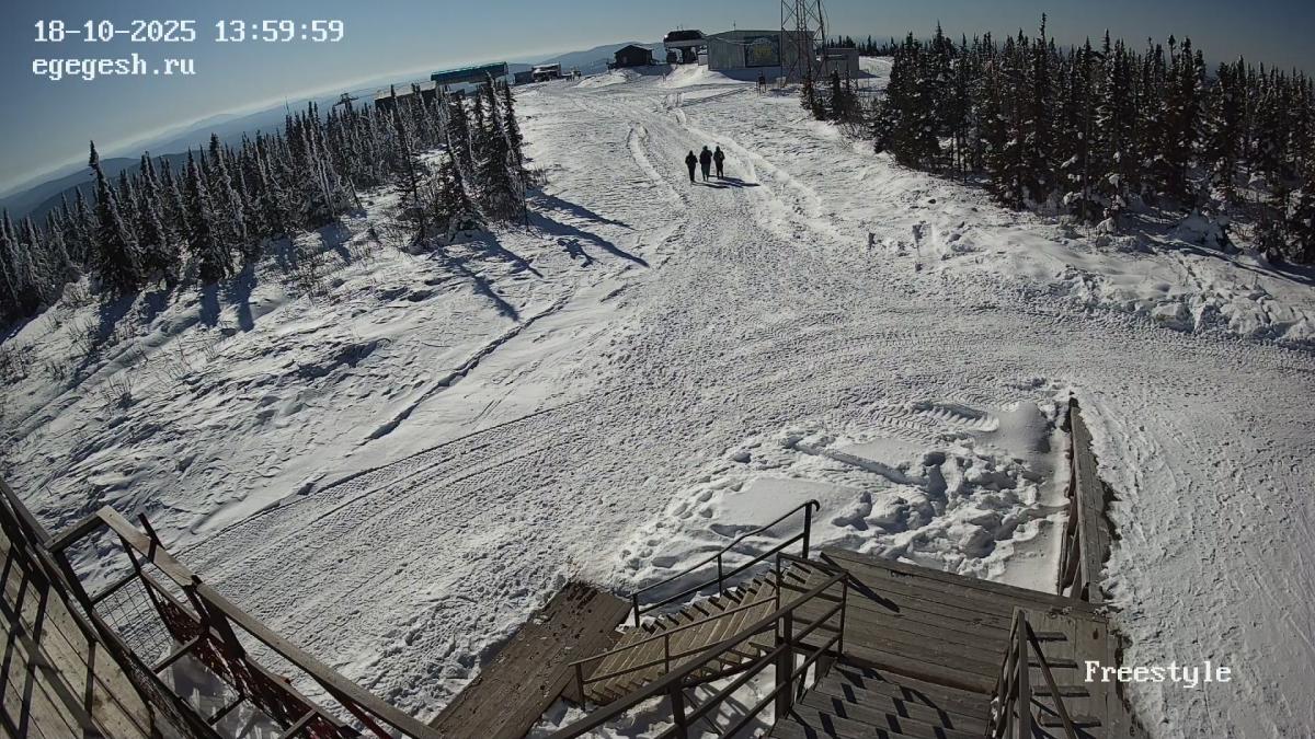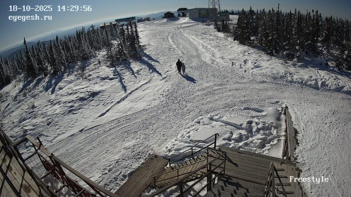 Веб-камера установлена на здании кафе Freedom. Добраться можно на подъемнике «Фристайл».