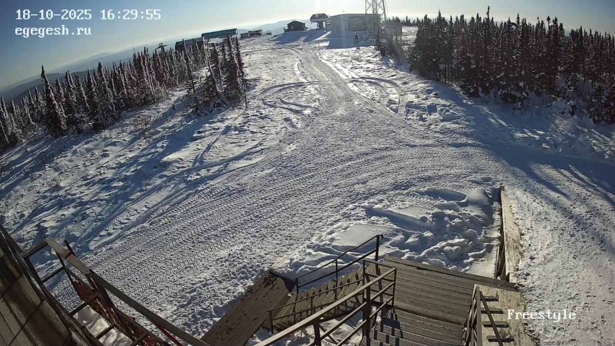 Веб-камера установлена на здании кафе Freedom. Добраться можно на подъемнике «Фристайл».