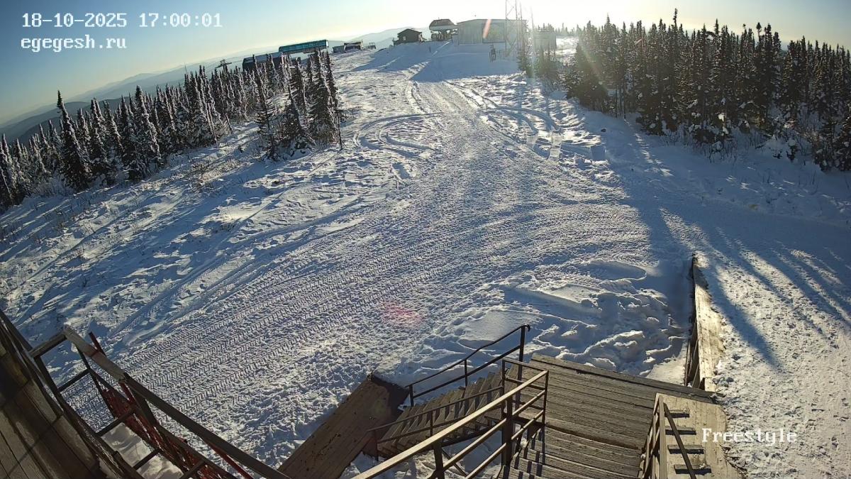 Веб-камера установлена на здании кафе Freedom. Добраться можно на подъемнике «Фристайл».