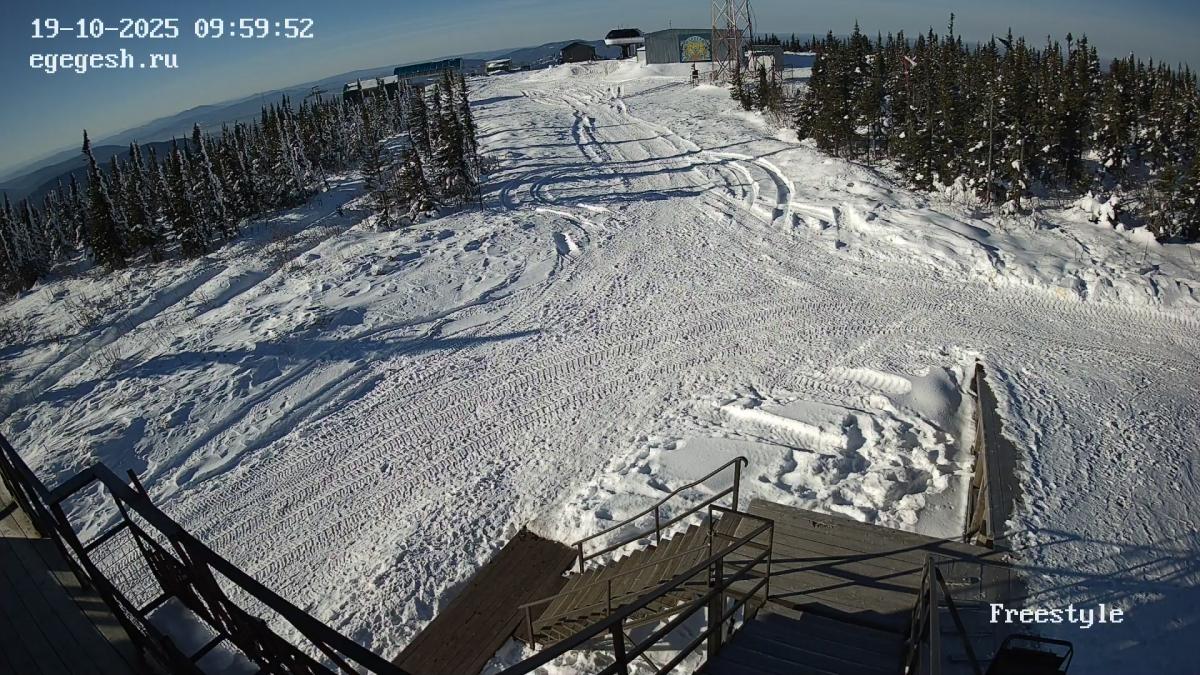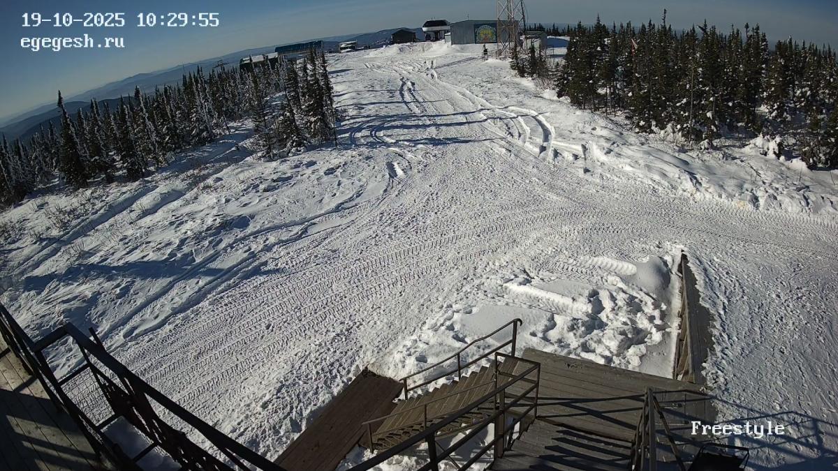 Веб-камера установлена на здании кафе Freedom. Добраться можно на подъемнике «Фристайл».