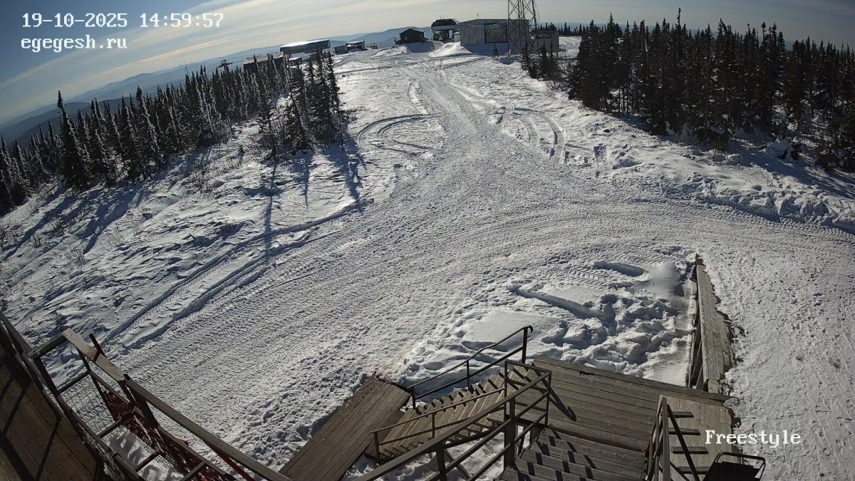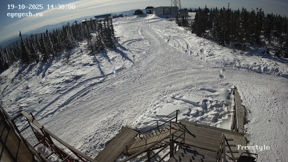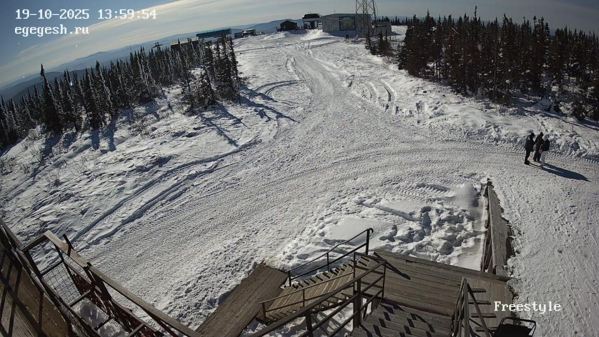 Веб-камера установлена на здании кафе Freedom. Добраться можно на подъемнике «Фристайл».