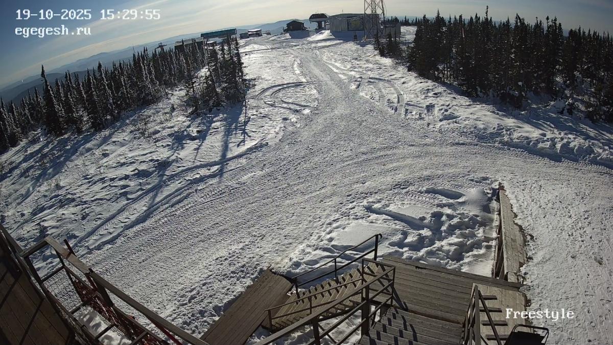 Веб-камера установлена на здании кафе Freedom. Добраться можно на подъемнике «Фристайл».