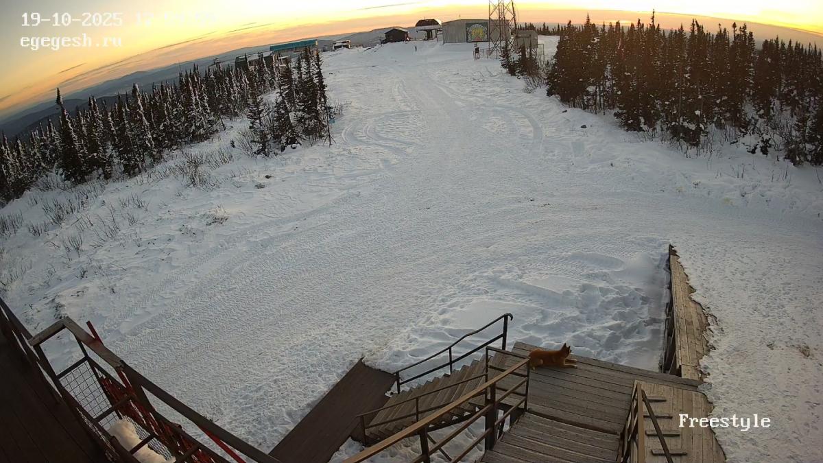 Веб-камера установлена на здании кафе Freedom. Добраться можно на подъемнике «Фристайл».
