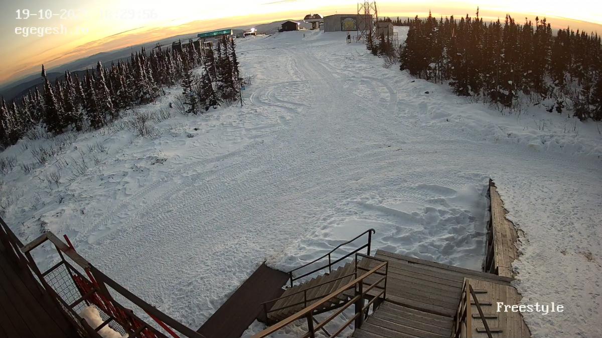 Веб-камера установлена на здании кафе Freedom. Добраться можно на подъемнике «Фристайл».