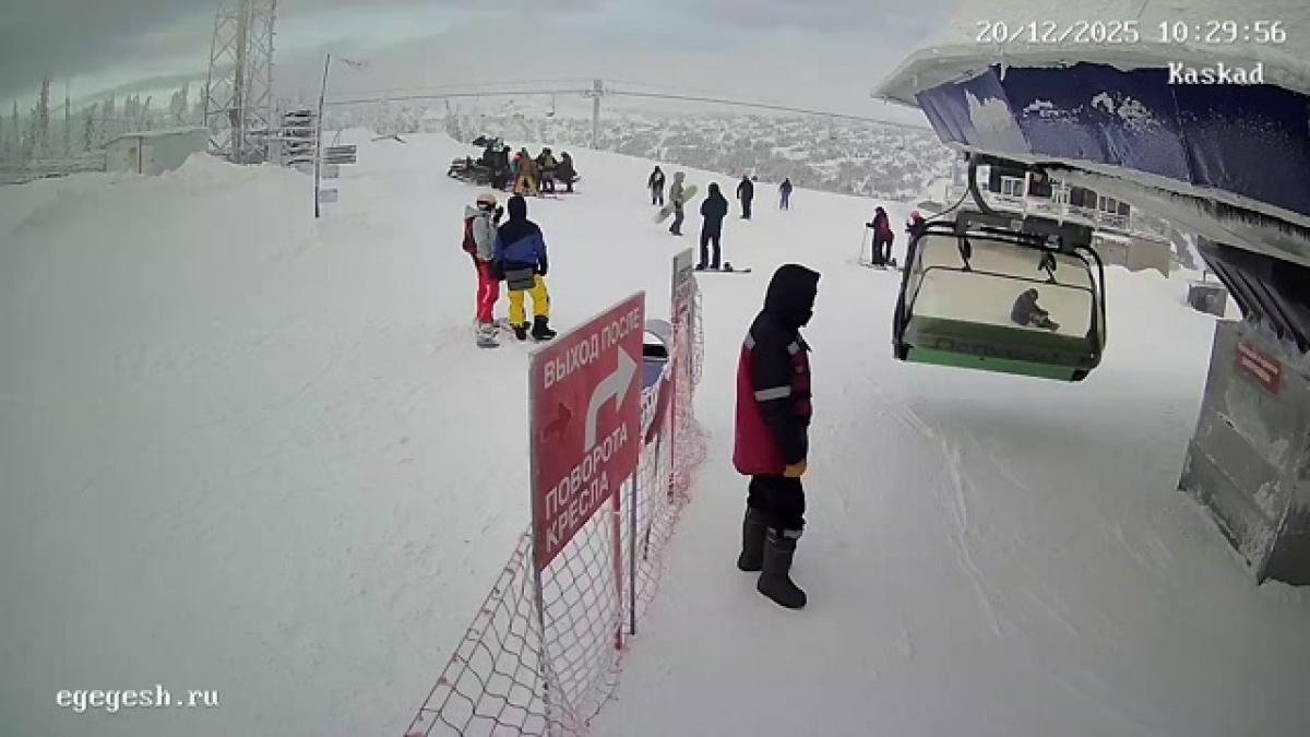 Веб-камера показывает высадку с подъёмника «Олимпия-Экспресс» на секторе А.
