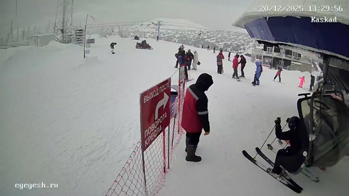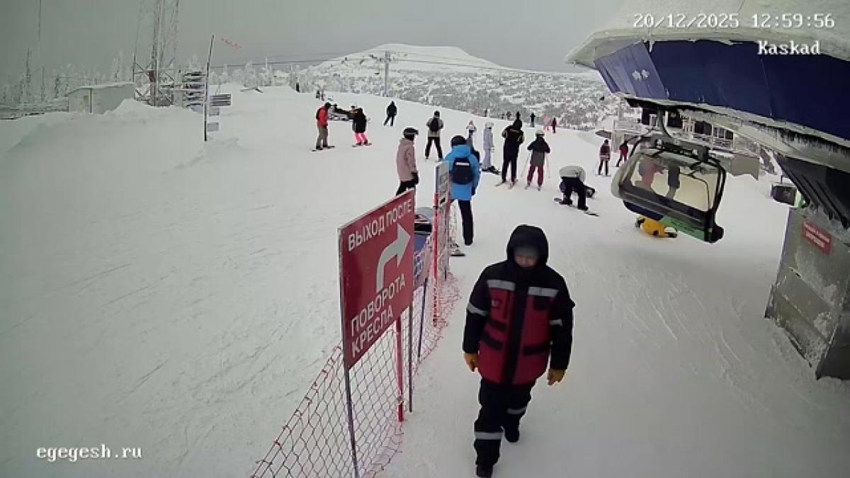 Веб-камера показывает высадку с подъёмника «Олимпия-Экспресс» на секторе А.