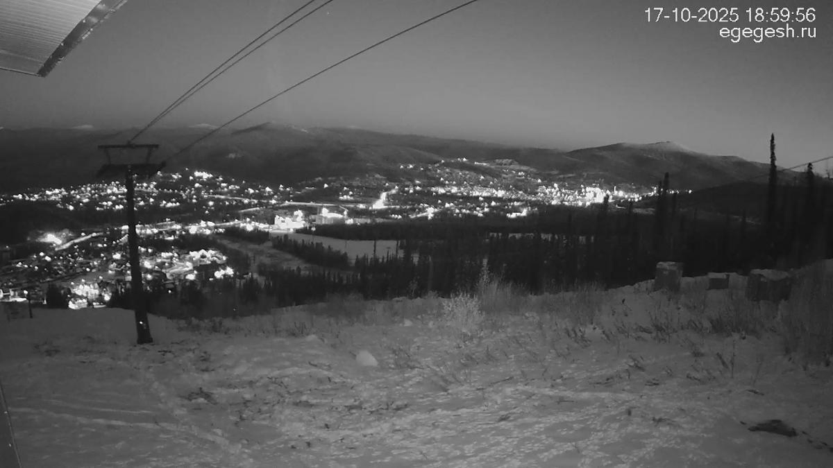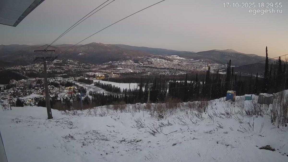 В объективе обзорной веб-камеры открывается вид на подъёмник «Олимпия-Экспресс», отели на горе Зелёная и посёлок Шерегеш. Справа на видео виден кресельный подъёмник «Фристайл».