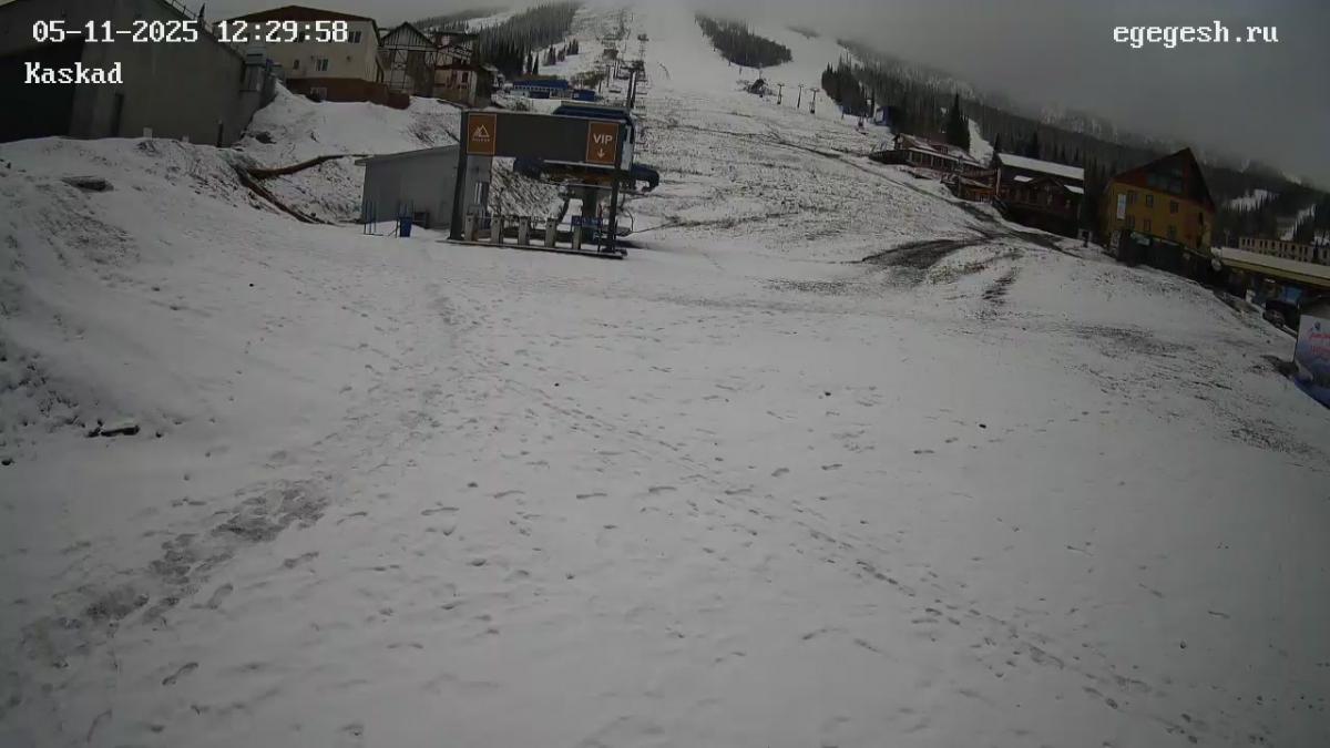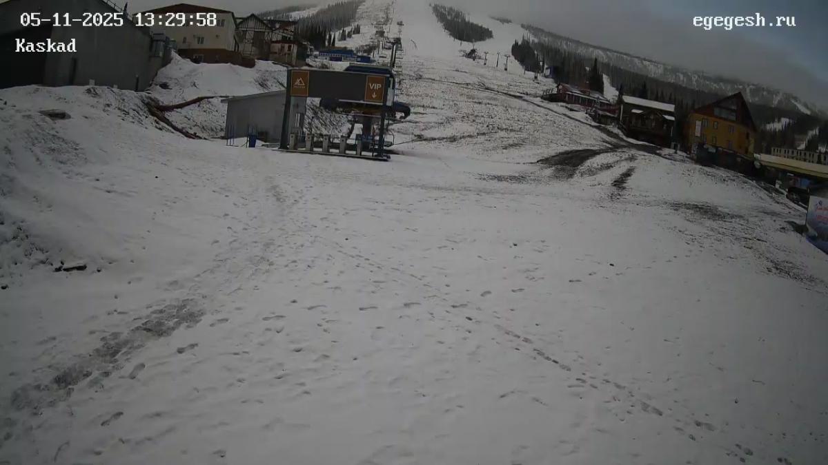 Веб-камера показывает посадку на канатную дорогу «Учебная» на секторе А и завершающий участок трассы «Лоб» и «Учебная».