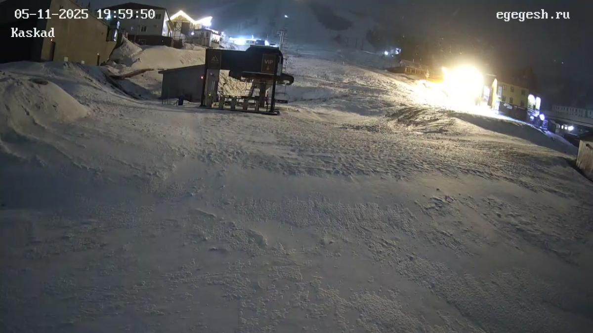 Веб-камера показывает посадку на канатную дорогу «Учебная» на секторе А и завершающий участок трассы «Лоб» и «Учебная».