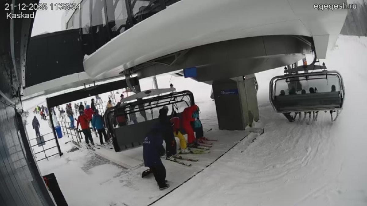 Веб-камера показывает посадку на подъёмник «Восток» в секторе B.