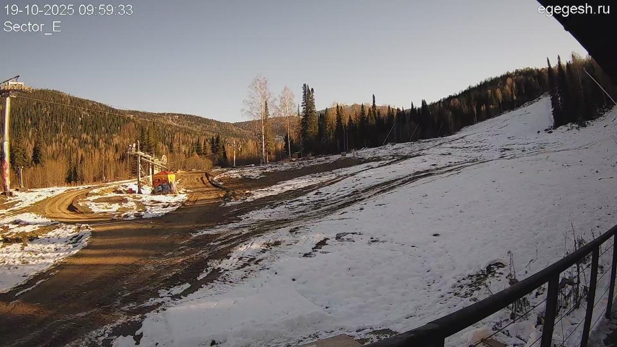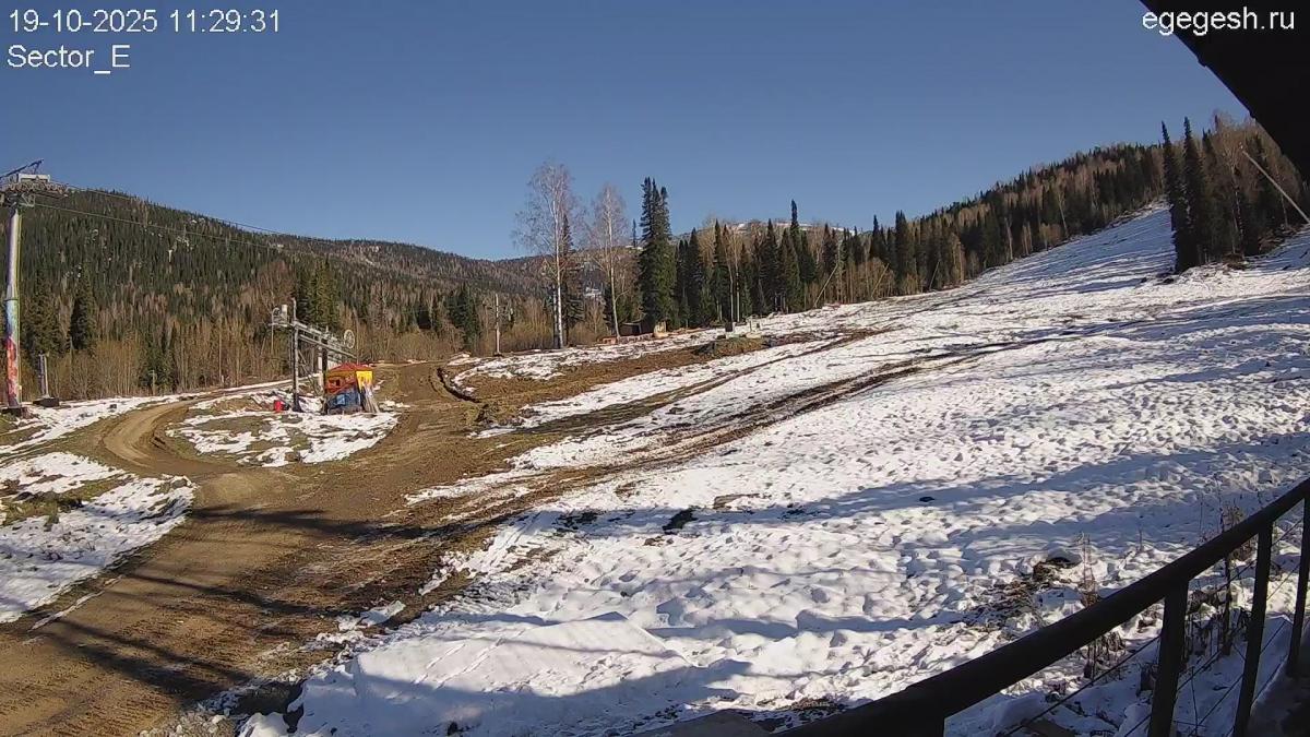 Веб-камера показывает парк в секторе Е. Сноупарк представляет собой ряд фигур – учебная труба, спайн с бочкой и др., где начинающие и опытные лыжники и сноубордисты могут научиться делать зрелищные трюки, поупражняться на трамплинах.
