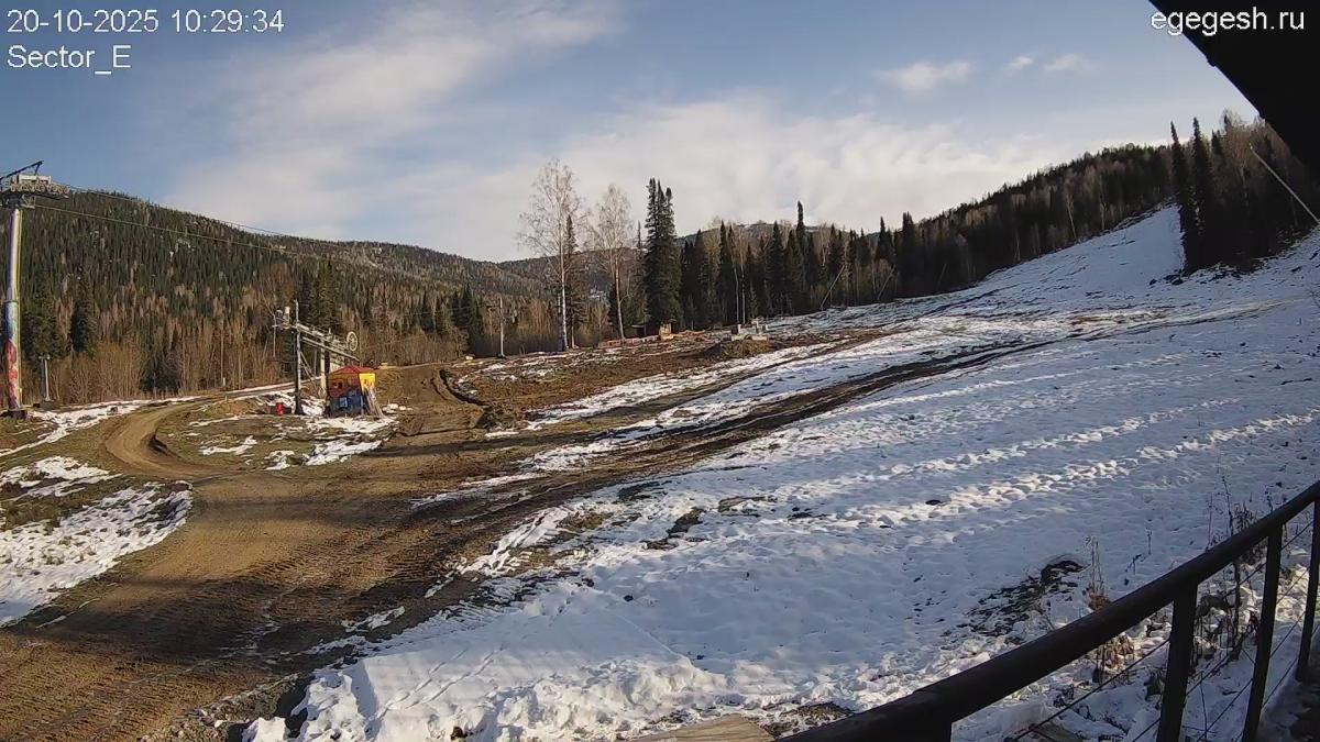 Веб-камера показывает парк в секторе Е. Сноупарк представляет собой ряд фигур – учебная труба, спайн с бочкой и др., где начинающие и опытные лыжники и сноубордисты могут научиться делать зрелищные трюки, поупражняться на трамплинах.