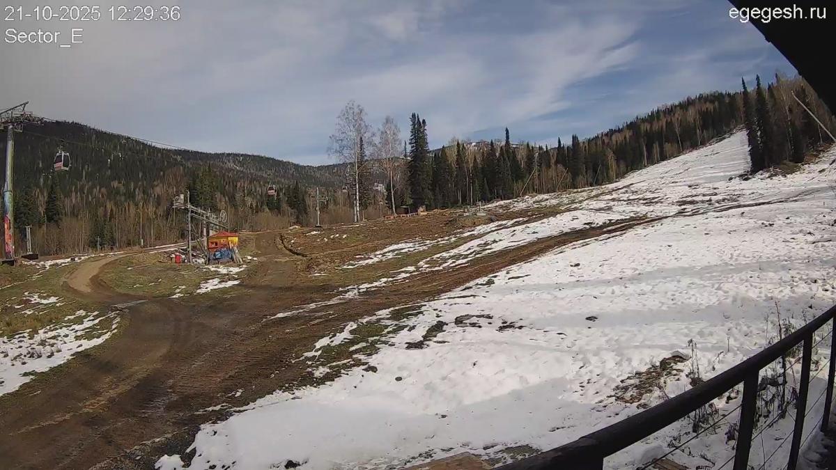 Веб-камера показывает парк в секторе Е. Сноупарк представляет собой ряд фигур – учебная труба, спайн с бочкой и др., где начинающие и опытные лыжники и сноубордисты могут научиться делать зрелищные трюки, поупражняться на трамплинах.