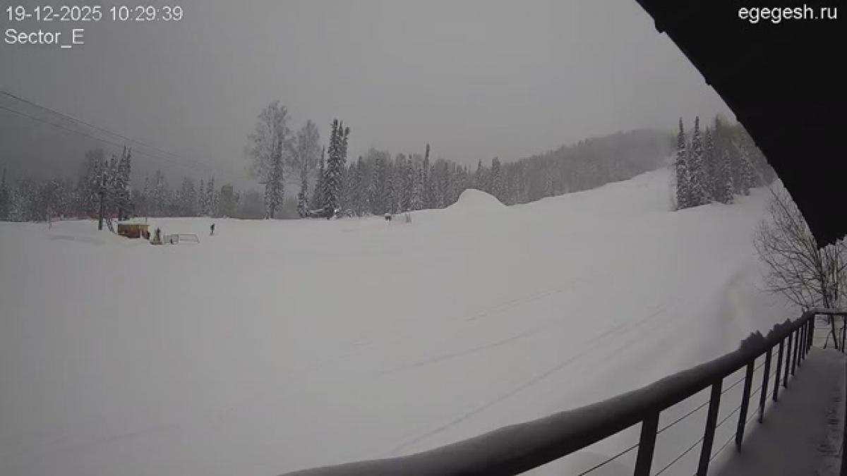 Веб-камера показывает парк в секторе Е. Сноупарк представляет собой ряд фигур – учебная труба, спайн с бочкой и др., где начинающие и опытные лыжники и сноубордисты могут научиться делать зрелищные трюки, поупражняться на трамплинах.