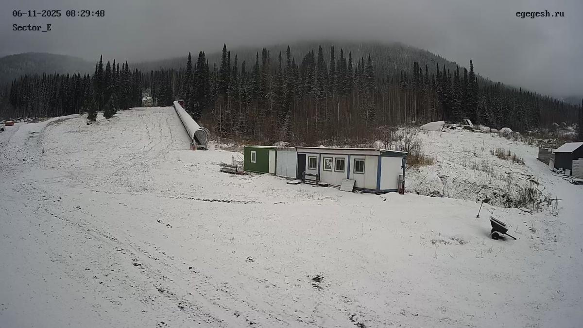 Веб-камера показывает пологий склон в секторе Е, где обычно проводятся тренировки начинающих.