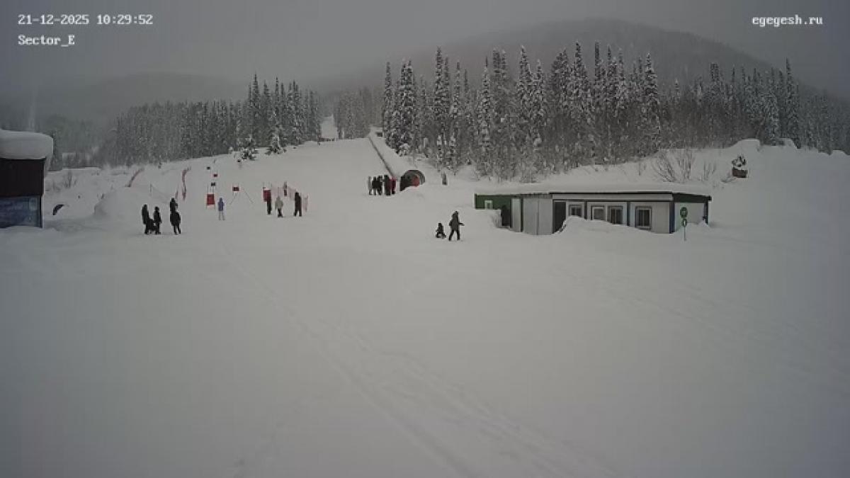 Веб-камера показывает пологий склон в секторе Е, где обычно проводятся тренировки начинающих.