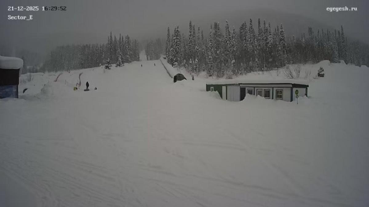Веб-камера показывает пологий склон в секторе Е, где обычно проводятся тренировки начинающих.