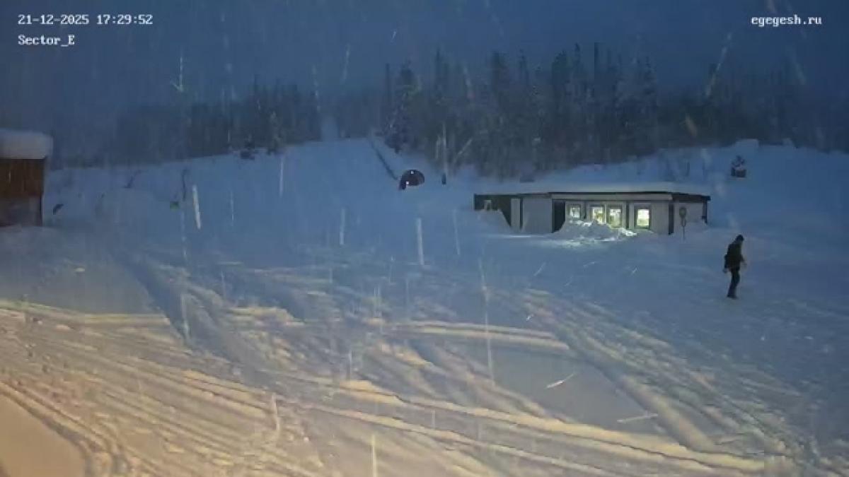 Веб-камера показывает пологий склон в секторе Е, где обычно проводятся тренировки начинающих.