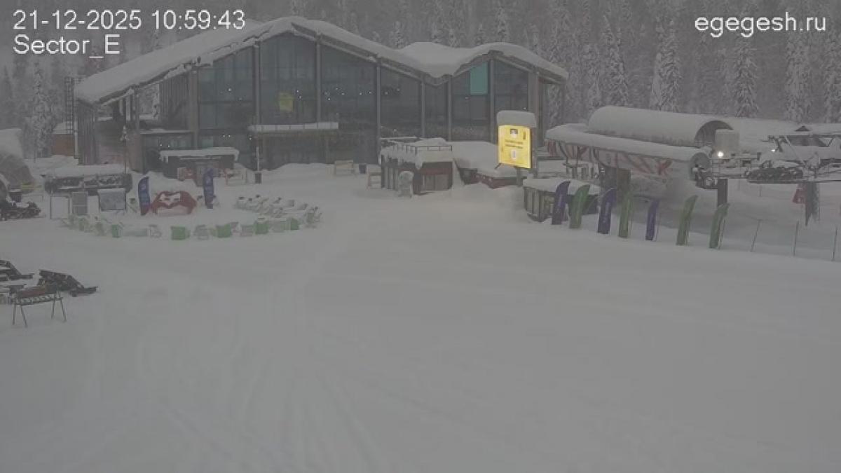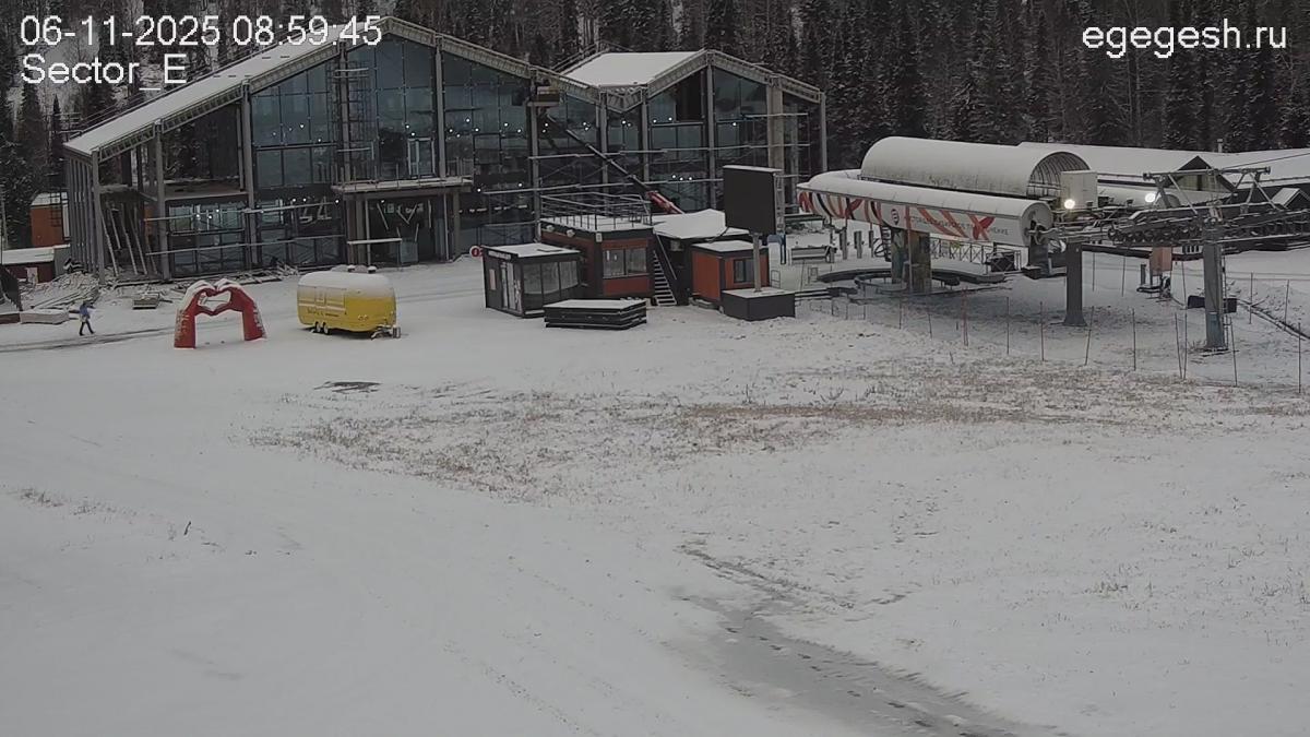 Веб-камера направлена на выкат трассы «Сектор Е». Справа виден одноимённый гондольный подъёмник.