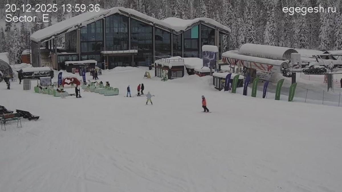 Веб-камера направлена на выкат трассы «Сектор Е». Справа виден одноимённый гондольный подъёмник.