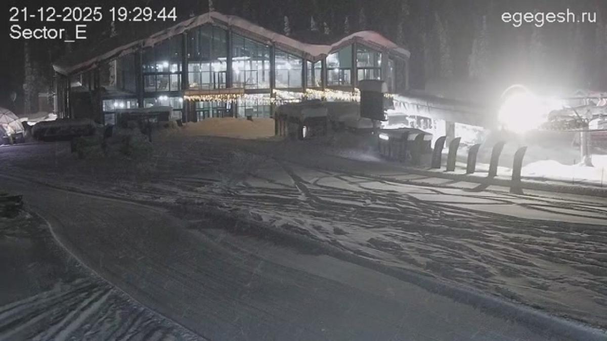 Веб-камера направлена на выкат трассы «Сектор Е». Справа виден одноимённый гондольный подъёмник.