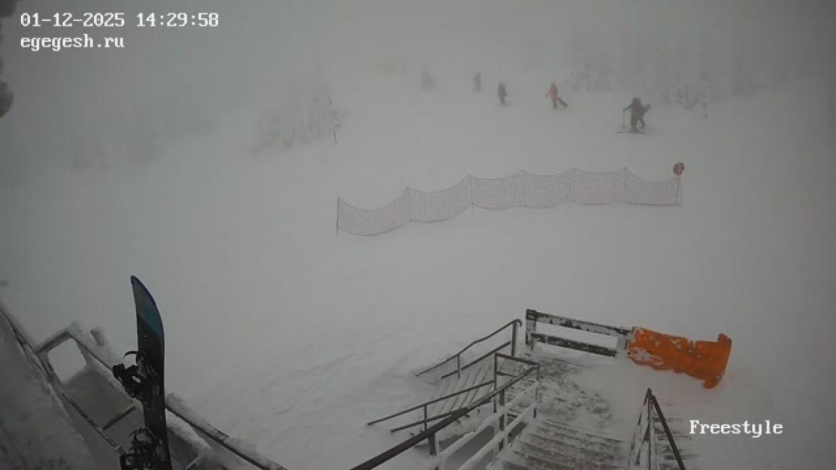 Веб-камера установлена на здании кафе Freedom. Добраться можно на подъемнике «Фристайл».