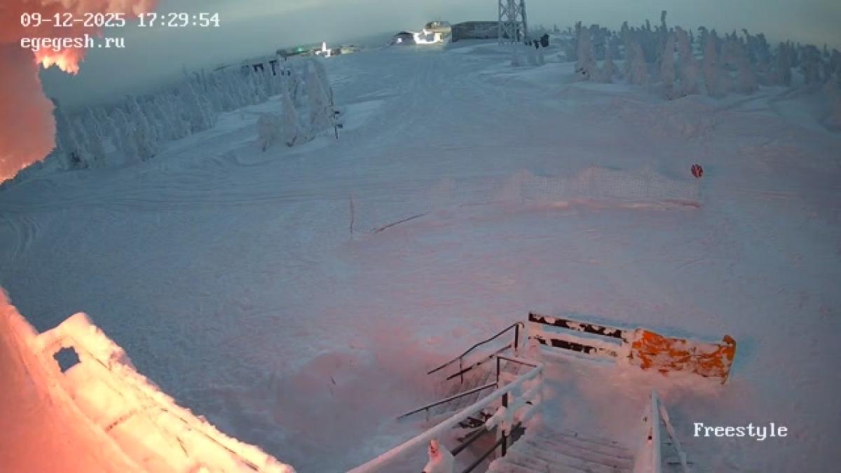 Веб-камера установлена на здании кафе Freedom. Добраться можно на подъемнике «Фристайл».