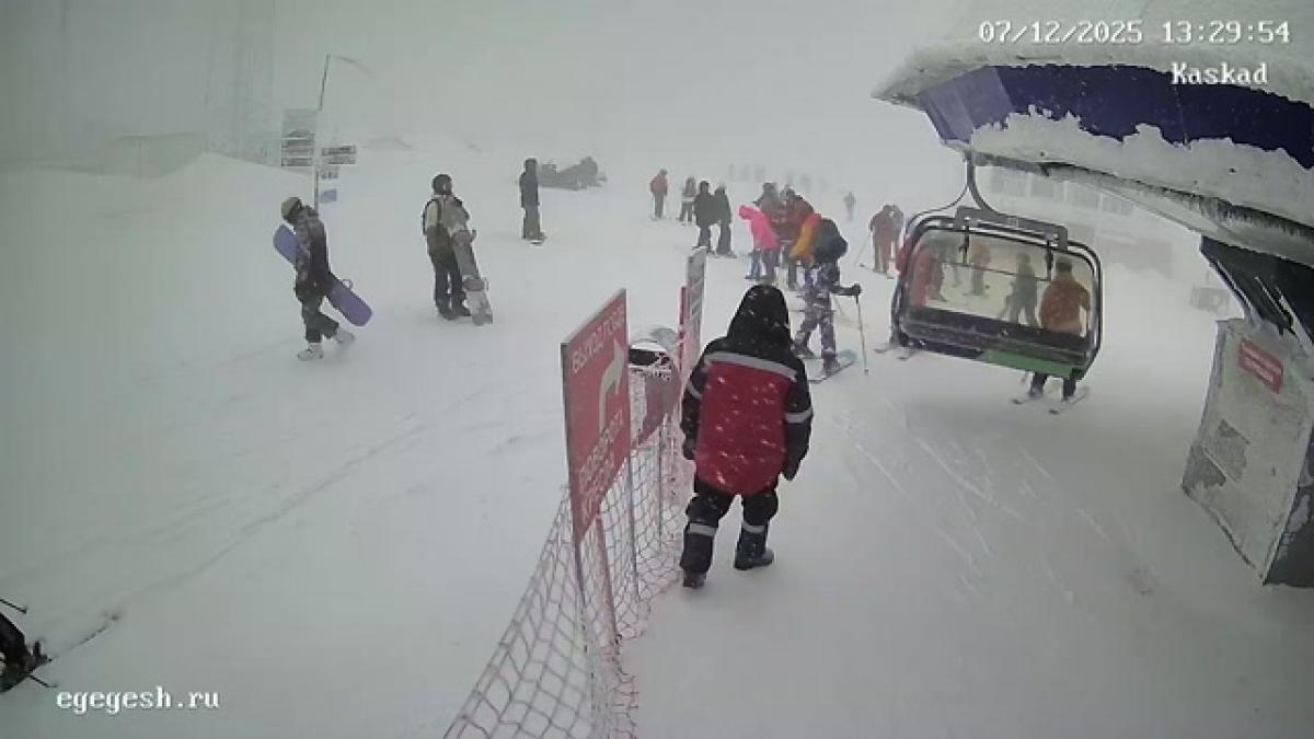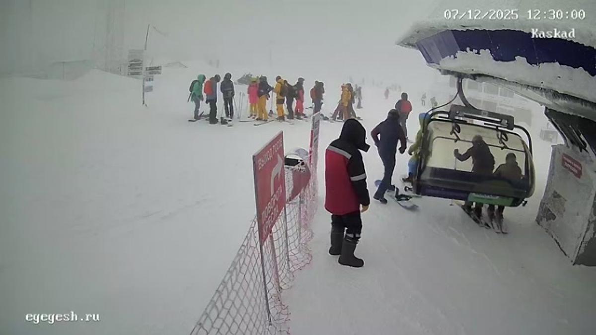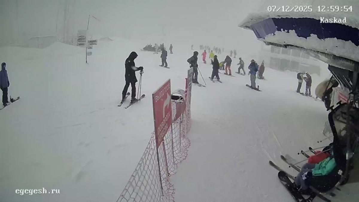 Веб-камера показывает высадку с подъёмника «Олимпия-Экспресс» на секторе А.