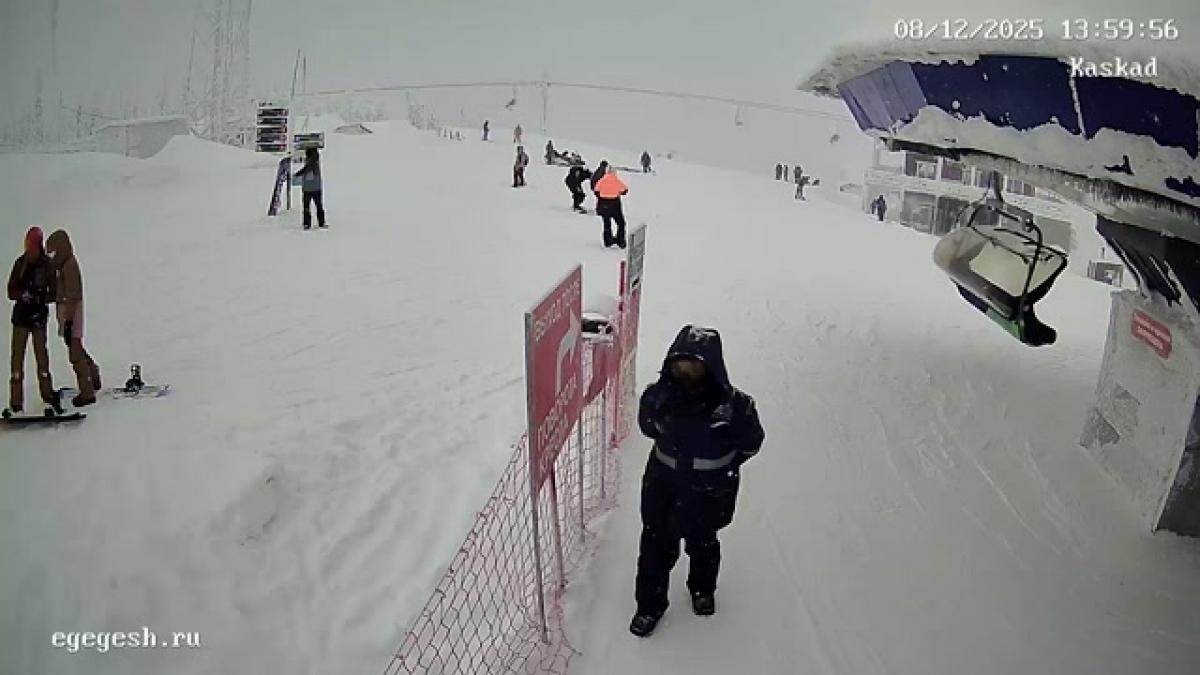Веб-камера показывает высадку с подъёмника «Олимпия-Экспресс» на секторе А.