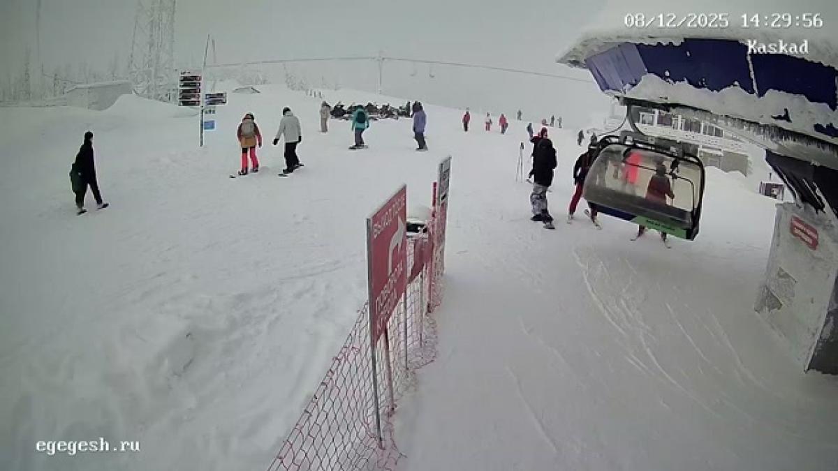Веб-камера показывает высадку с подъёмника «Олимпия-Экспресс» на секторе А.