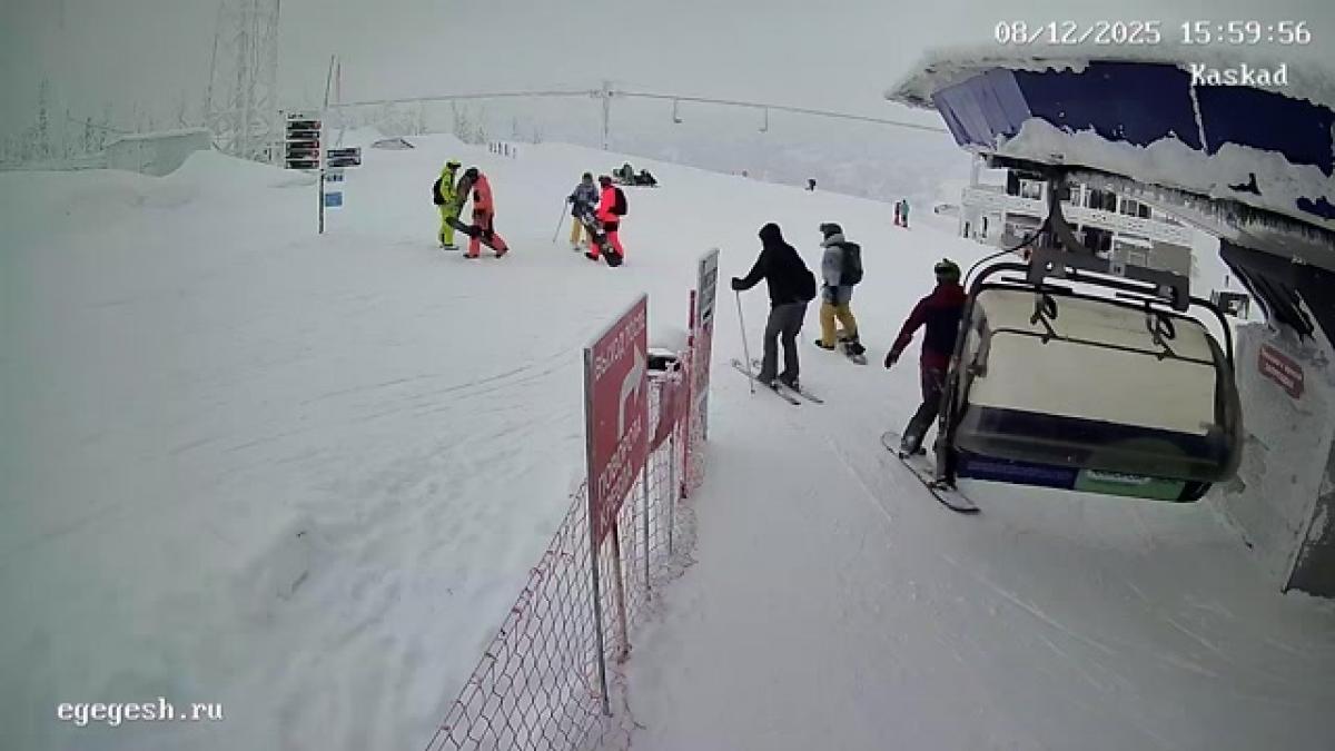 Веб-камера показывает высадку с подъёмника «Олимпия-Экспресс» на секторе А.