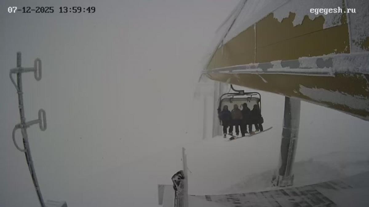 Веб-камера показывает верхнюю станцию канатной дороги «Мустаг» в секторе B.