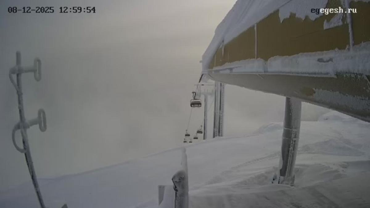 Веб-камера показывает верхнюю станцию канатной дороги «Мустаг» в секторе B.