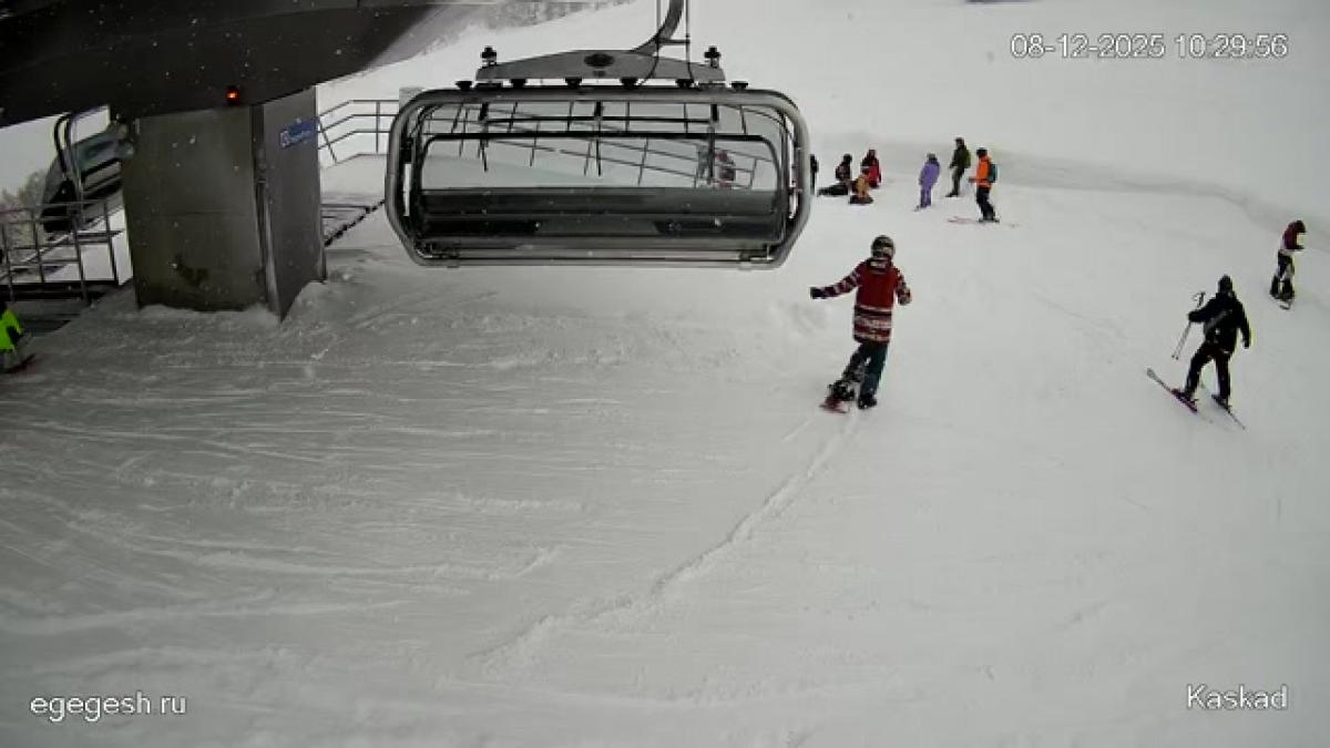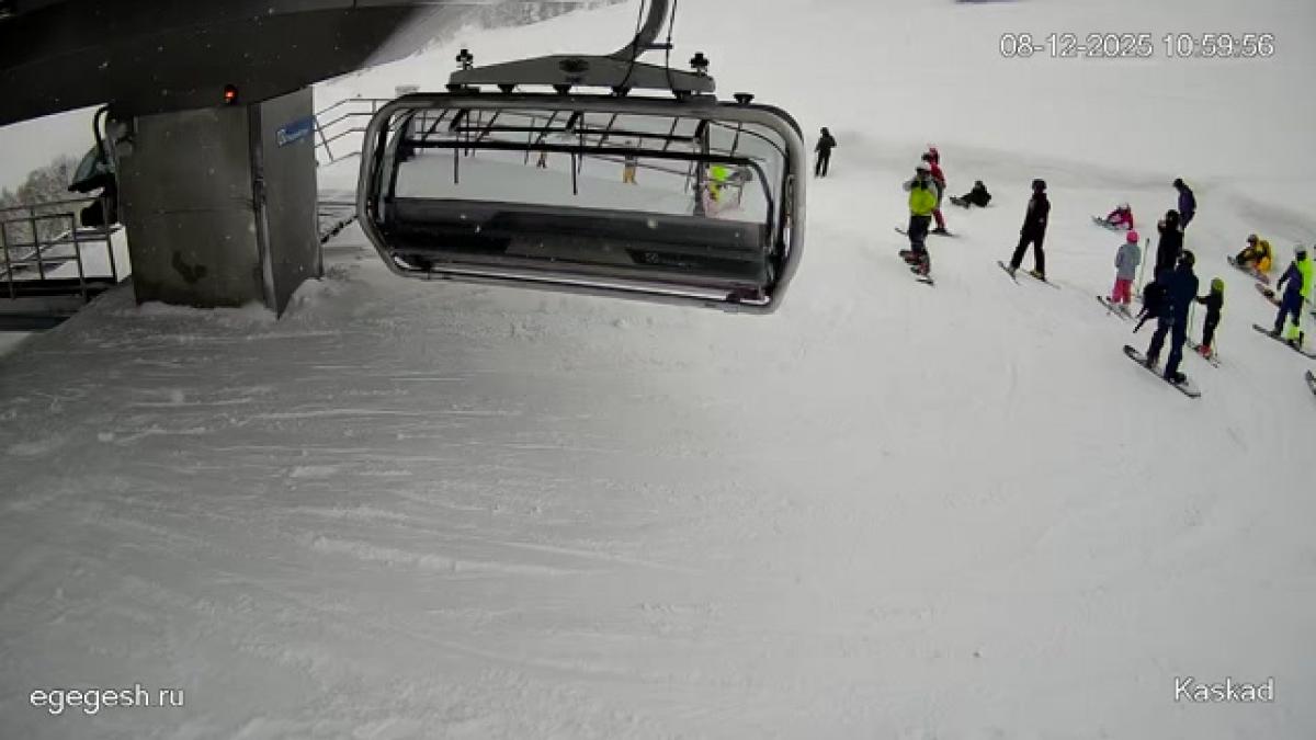 Веб-камера показывает высадку с верхней станции подъёмника «Восток».