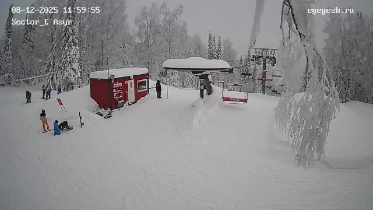 Скриншот с веб-камеры Сектор Е. Асыр верхняя станция 08.12.2025 11:30:07