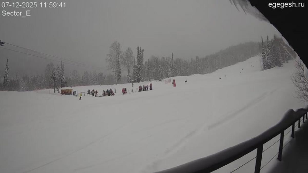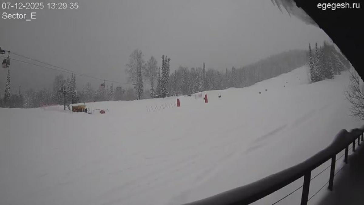 Веб-камера показывает парк в секторе Е. Сноупарк представляет собой ряд фигур – учебная труба, спайн с бочкой и др., где начинающие и опытные лыжники и сноубордисты могут научиться делать зрелищные трюки, поупражняться на трамплинах.