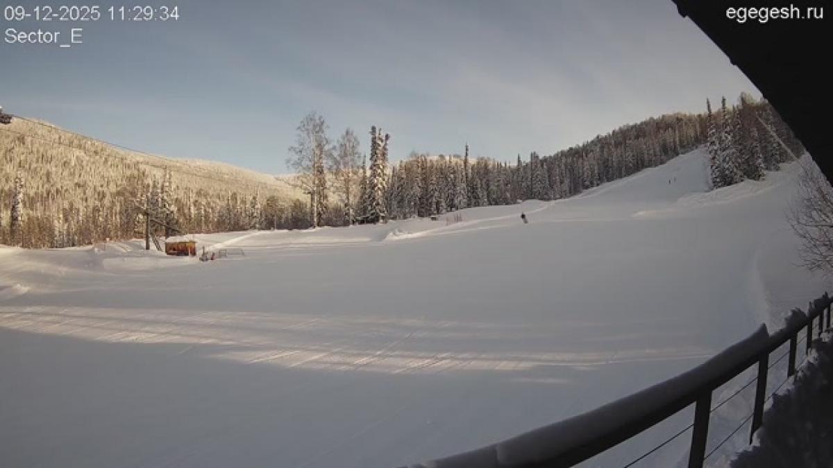 Веб-камера показывает парк в секторе Е. Сноупарк представляет собой ряд фигур – учебная труба, спайн с бочкой и др., где начинающие и опытные лыжники и сноубордисты могут научиться делать зрелищные трюки, поупражняться на трамплинах.