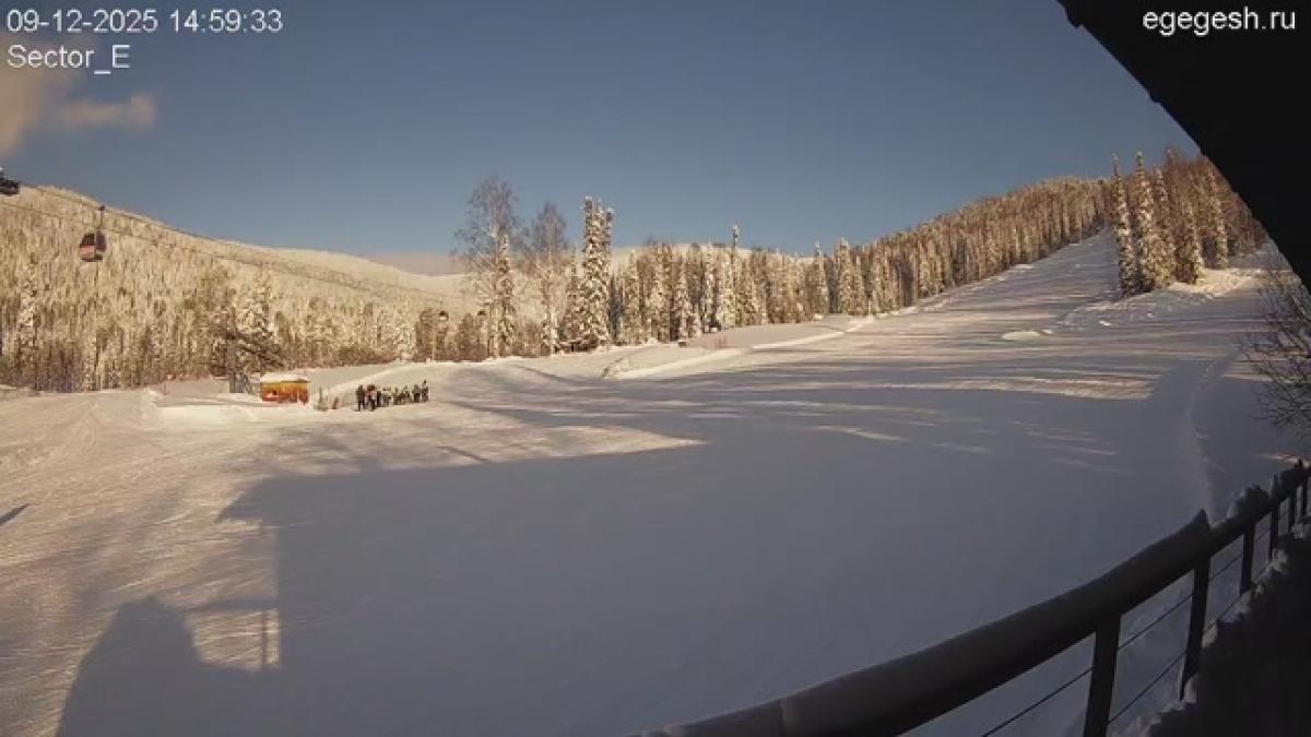 Веб-камера показывает парк в секторе Е. Сноупарк представляет собой ряд фигур – учебная труба, спайн с бочкой и др., где начинающие и опытные лыжники и сноубордисты могут научиться делать зрелищные трюки, поупражняться на трамплинах.