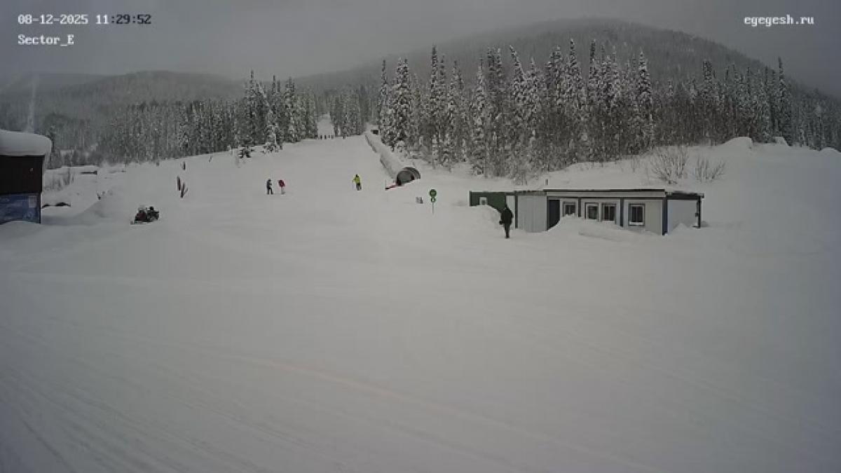 Веб-камера показывает пологий склон в секторе Е, где обычно проводятся тренировки начинающих.